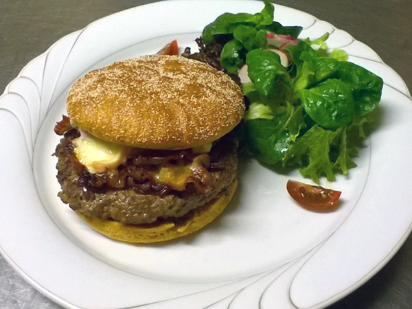 200g pur Beef von der deutschen Färse medium gebraten mit Preiselbeercreme, roten Zwiebeln, Alpenraclettekäse, Bacon und Feldsalat. Vorbei kommen und probieren lohnt sich!
